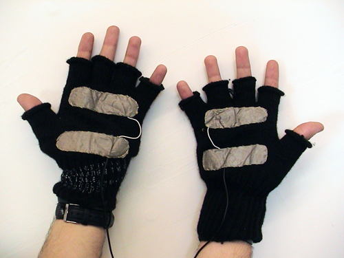 (2015) A gestural game using a glove with a Leap Motion sensor embedded in the palm, reading the other hand.